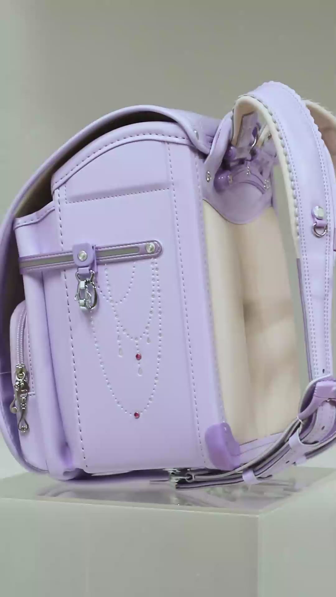 両サイドフック:ナスカン 肩ひも防犯フック:ナスカン、Dカン ポケット内フック:Dカン 時間割表:カブセ裏面 |