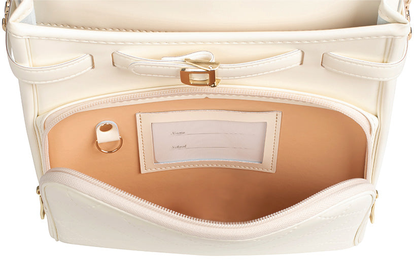 両サイドフック:ナスカン 肩ひも防犯フック:Dカン ポケット内フック:Dカン 時間割表:無し |