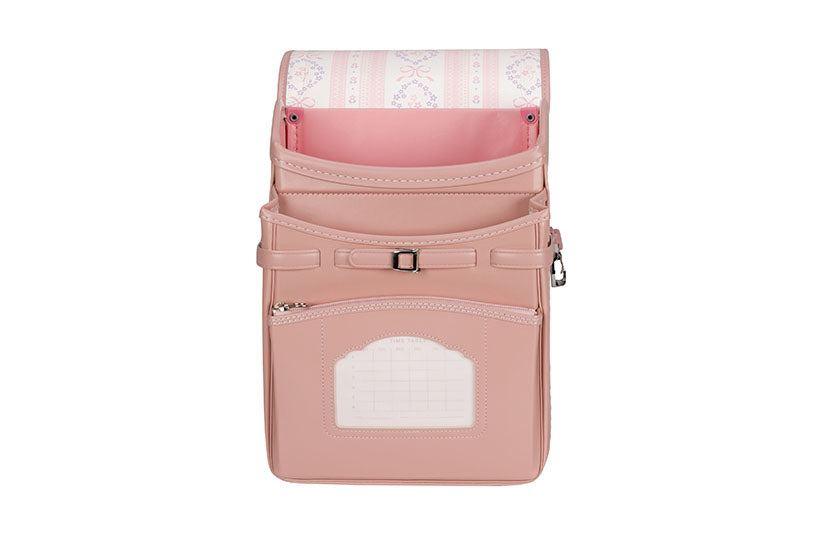 両サイドフック:ナスカン、Dカン 肩ひも防犯フック:片側Dカン ポケット内フック:Dカン 時間割表:ポケット窓枠 |