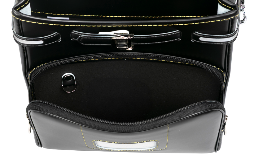 両サイドフック:ナスカン 肩ひも防犯フック:ナスカン、Dカン ポケット内フック:Dカン 時間割表:カブセ裏面 |