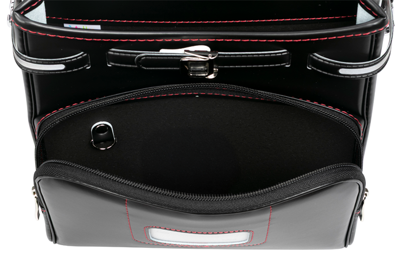 両サイドフック:ナスカン 肩ひも防犯フック:ナスカン、Dカン ポケット内フック:Dカン 時間割表:カブセ裏面 |