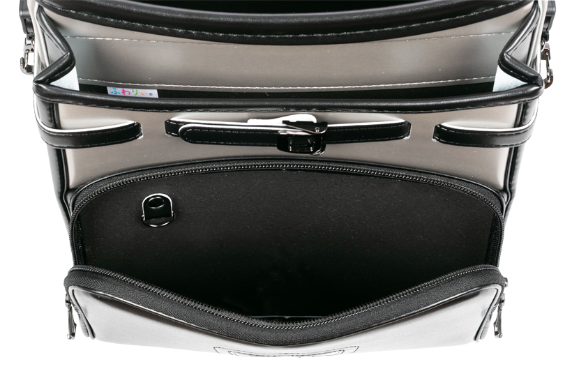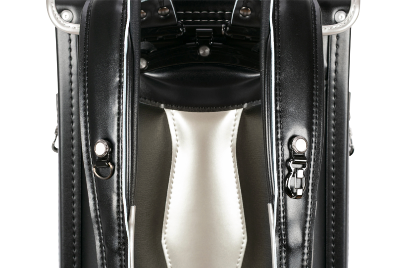 両サイドフック:ナスカン 肩ひも防犯フック:ナスカン、Dカン ポケット内フック:Dカン 時間割表:カブセ裏面 |