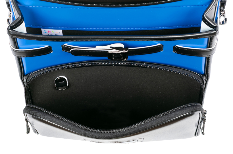 両サイドフック:ナスカン 肩ひも防犯フック:ナスカン、Dカン ポケット内フック:Dカン 時間割表:カブセ裏面 |