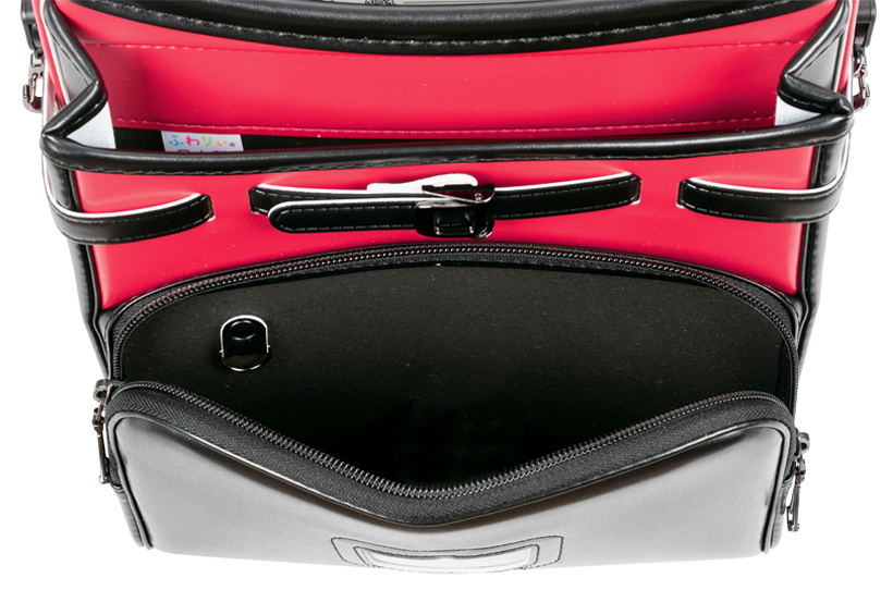 両サイドフック:ナスカン 肩ひも防犯フック:ナスカン、Dカン ポケット内フック:Dカン 時間割表:カブセ裏面 |
