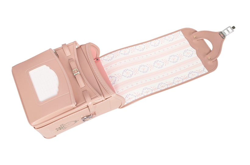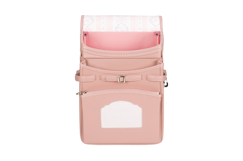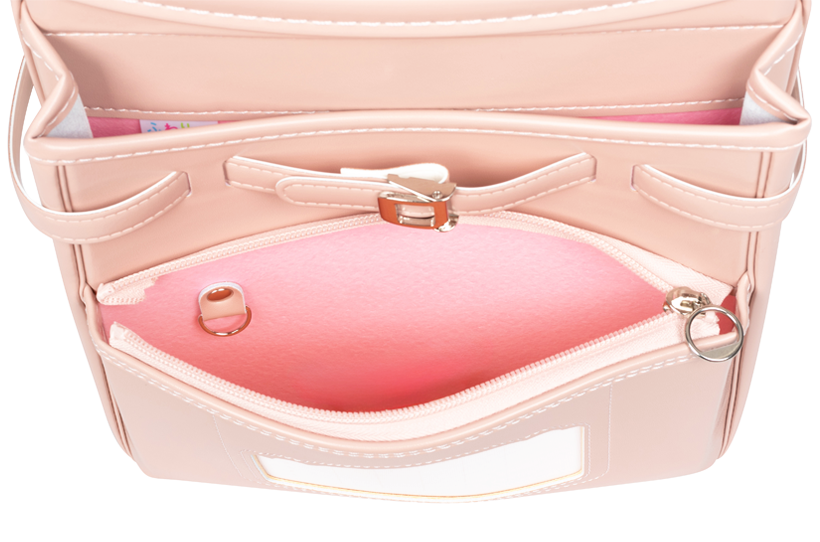 両サイドフック:ナスカン、Dカン 肩ひも防犯フック:片側Dカン ポケット内フック:Dカン 時間割表:ポケット窓枠 |