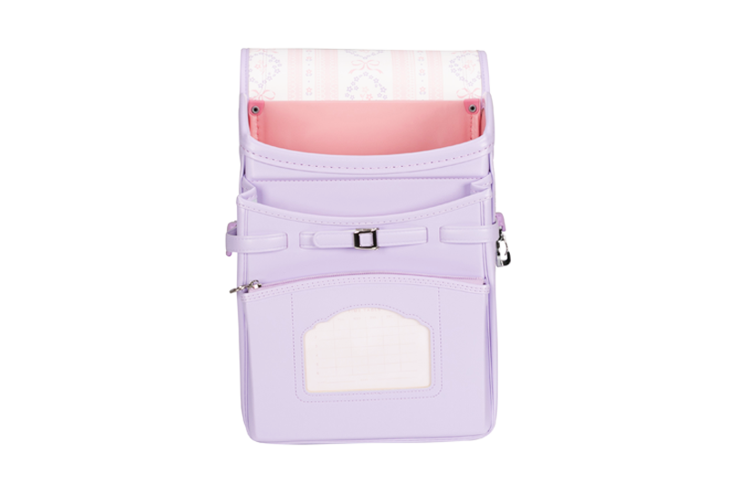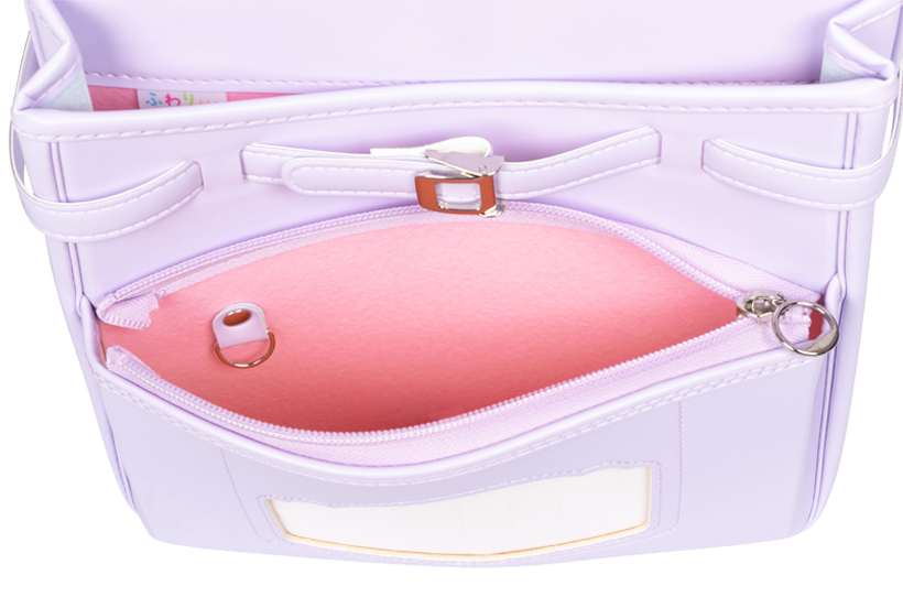 両サイドフック:ナスカン、Dカン 肩ひも防犯フック:片側Dカン ポケット内フック:Dカン 時間割表:ポケット窓枠 |