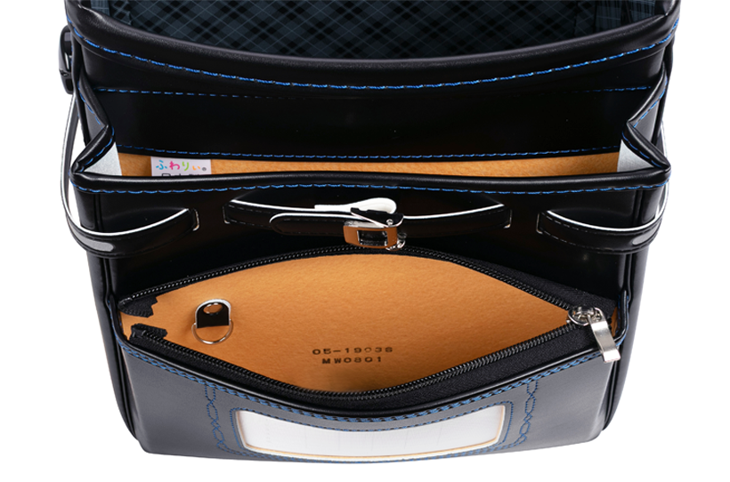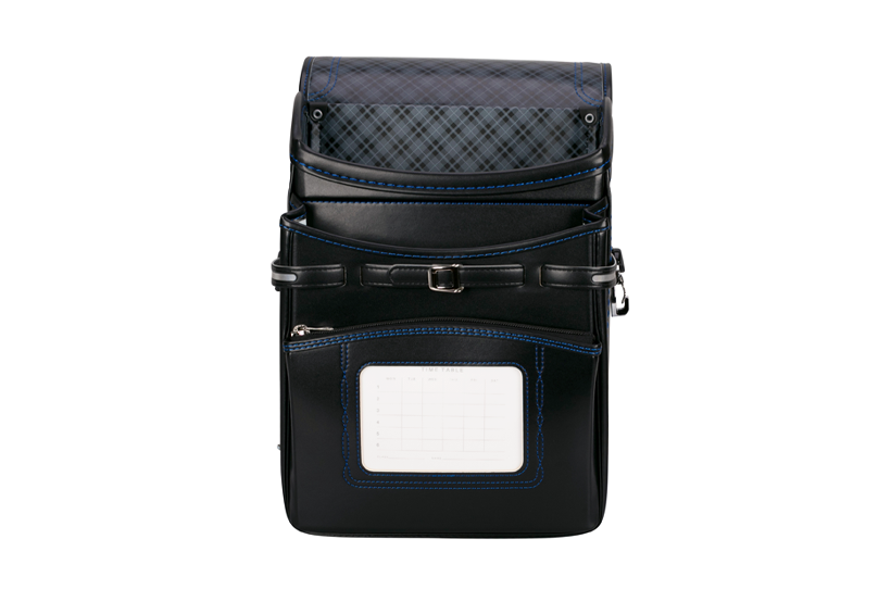 両サイドフック:ナスカン、Dカン 肩ひも防犯フック:片側Dカン ポケット内フック:Dカン 時間割表:ポケット窓枠 |