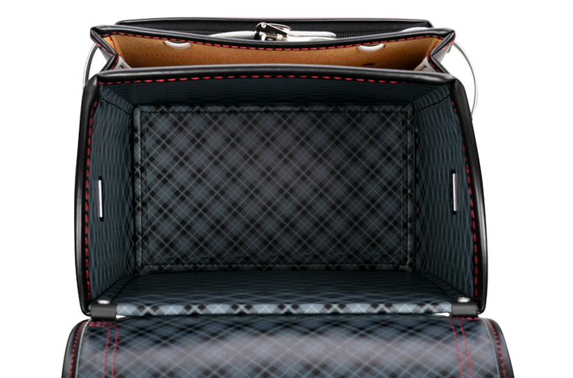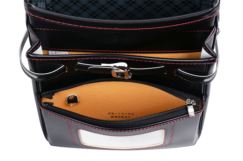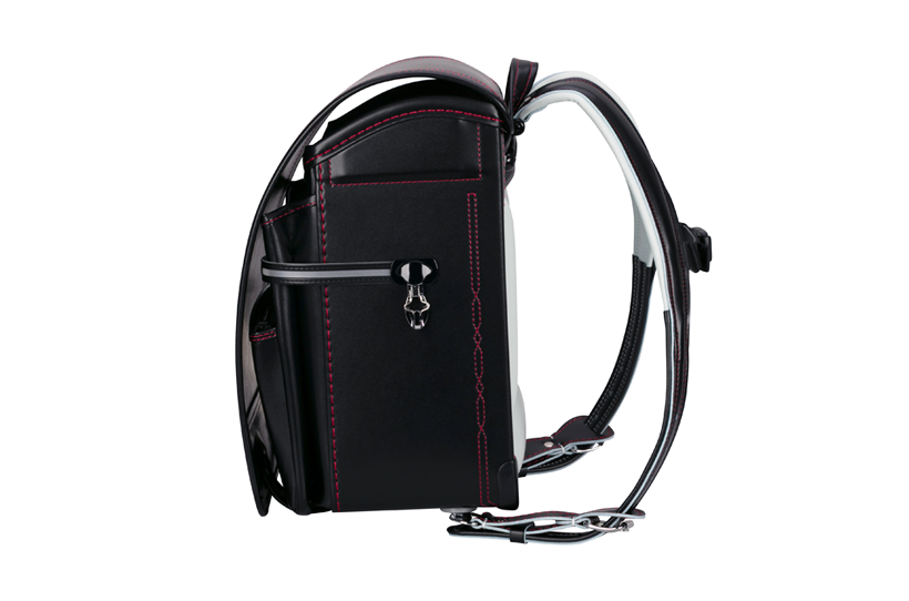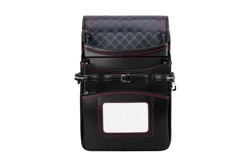 両サイドフック:ナスカン、Dカン 肩ひも防犯フック:片側Dカン ポケット内フック:Dカン 時間割表:ポケット窓枠 |