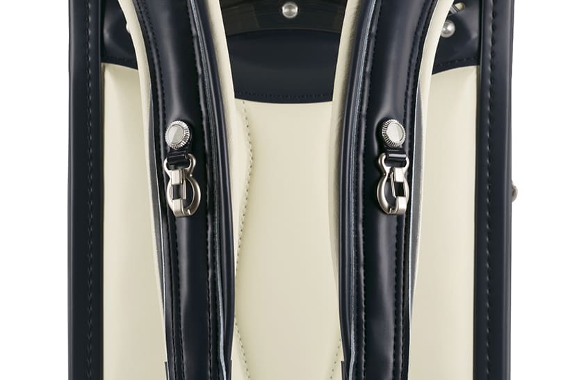 両サイドフック:ナスカン 肩ひも防犯フック:ナスカン ポケット内フック:ナスカン 時間割表:カブセ裏面 |