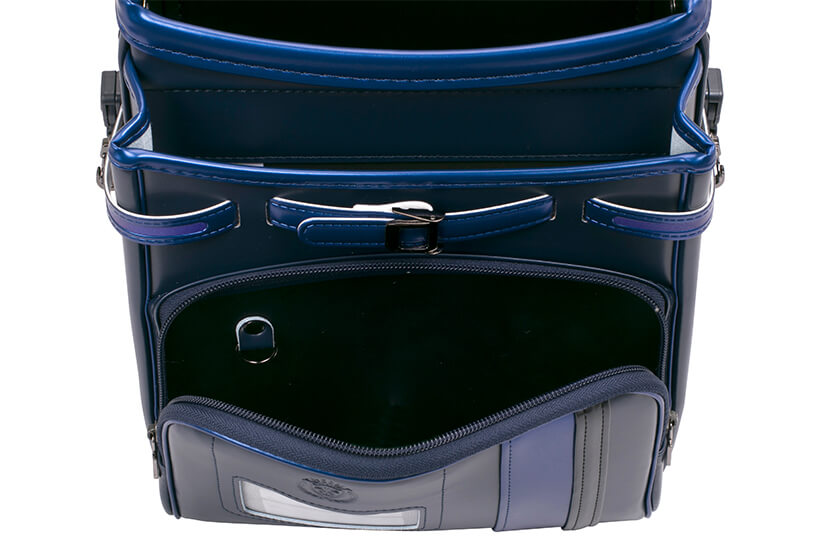 両サイドフック:ナスカン 肩ひも防犯フック:ナスカン、Dカン ポケット内フック:Dカン 時間割表:カブセ裏面 |