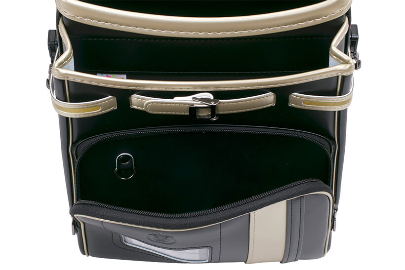 両サイドフック:ナスカン 肩ひも防犯フック:ナスカン、Dカン ポケット内フック:Dカン 時間割表:カブセ裏面 |
