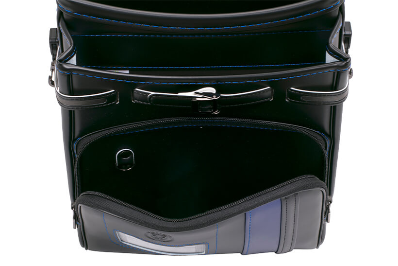 両サイドフック:ナスカン 肩ひも防犯フック:ナスカン、Dカン ポケット内フック:Dカン 時間割表:カブセ裏面 |