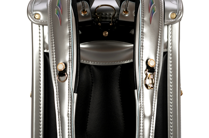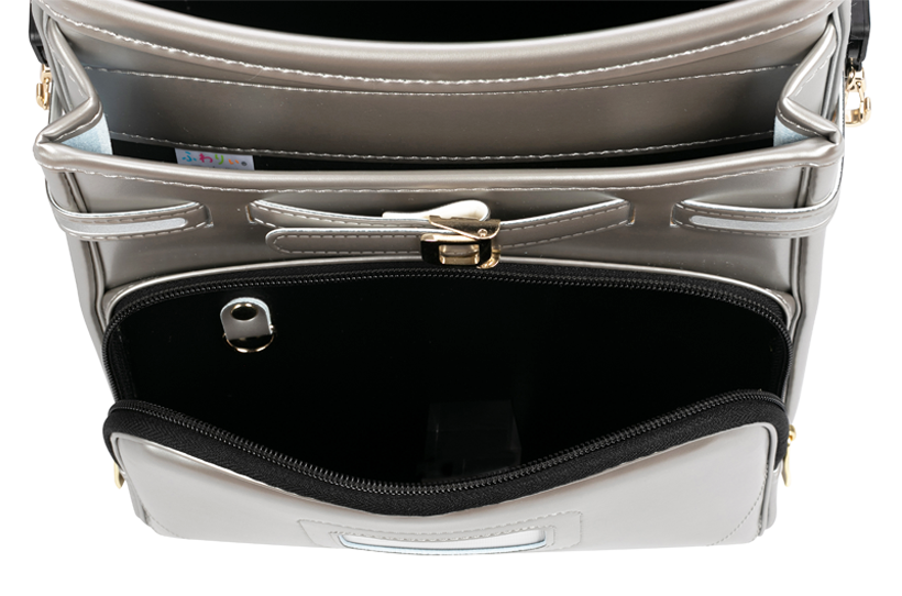 両サイドフック:ナスカン 肩ひも防犯フック:ナスカン、Dカン ポケット内フック:Dカン 時間割表:カブセ裏面 |