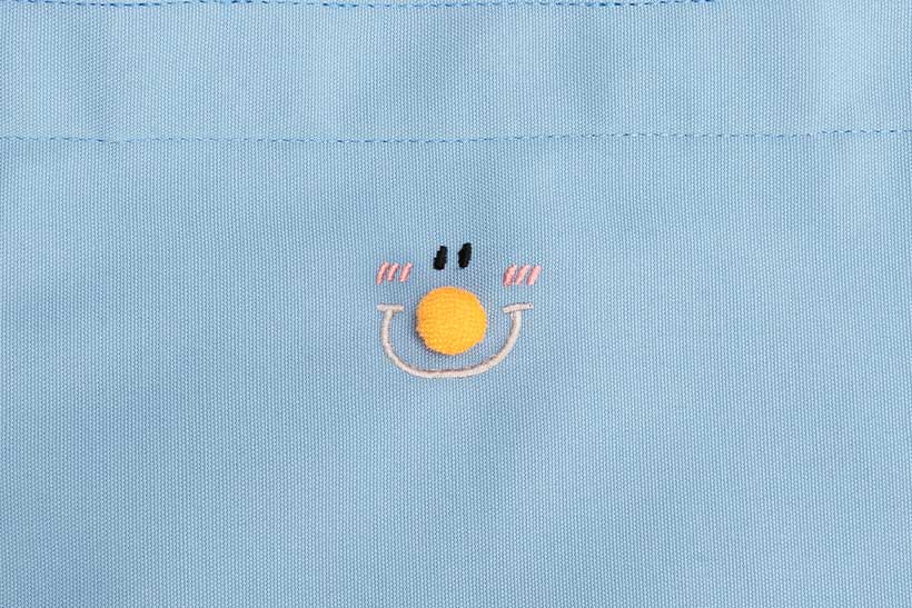 立体的にちょこんと付いたお鼻がアクセントのふわりぃの顔の刺繍がかわいい♪