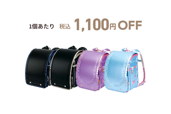 ランドセルを2~4個まとめてのご注文は、ランドセル1個あたり税込1,100円引きとさせていただきます。