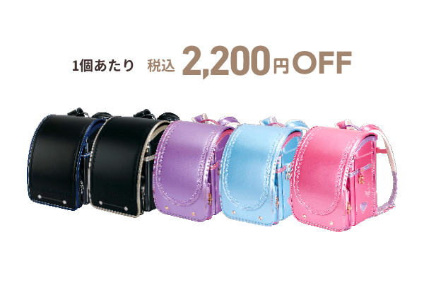 ランドセル5個以上まとめてのご注文は、1個あたり税込2,200円引きとさせていただきます。