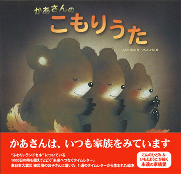 2011年3月、東日本大震災が発生し、一帯が甚大な被害に見舞われました。 その夏、おあずかりしていた「未来へつなぐタイムレター」を返送させていただく時期となり、被災地にお住まいのお子様の元へもタイムレターをお届けしました。 その差出人は震災で亡くなられたお母さんからだったのです。 あるメディアに取り上げられた事がきっかけとなり、誰もが一度は子供の頃に手にされた事のある絵本出版社「金の星社」より、「未来へつなぐタイムレター」の実話をもとにした絵本「かあさんのこもりうた」が製作・発行されました。
