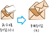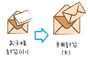 お子様宛の封筒(小)にお手紙を入れ、専用封筒(大)に入れ、所定の欄をご記入ください。
