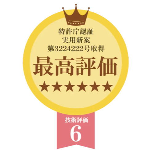 実用新案第3224222号において特許庁より「これまでにない業界唯一の新構造」との内容で最高評価をいただきました!