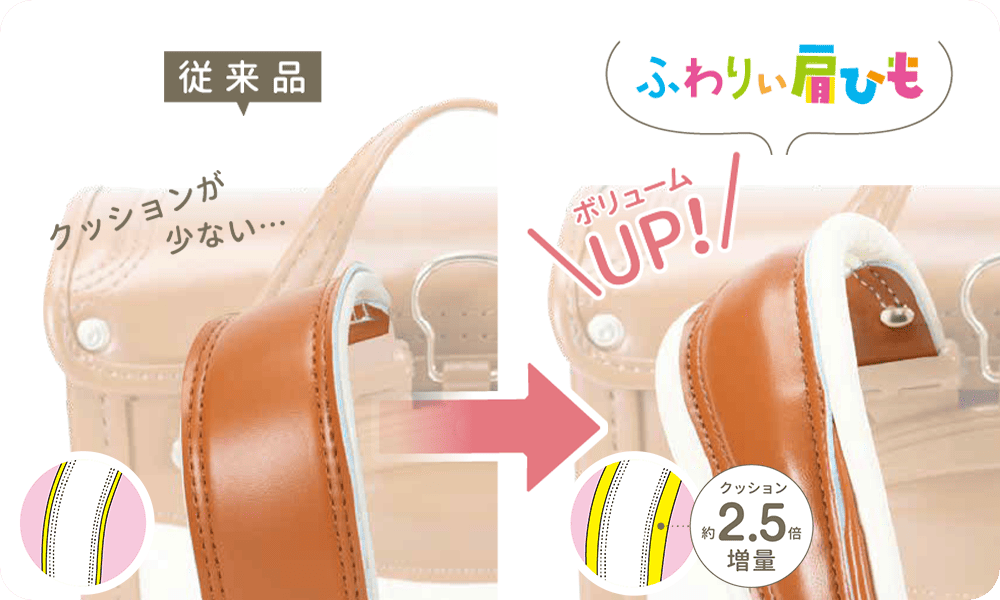 従来より約2.5倍クッションをボリュームUP!さわり心地ふわふわのふわりぃ肩ひも
