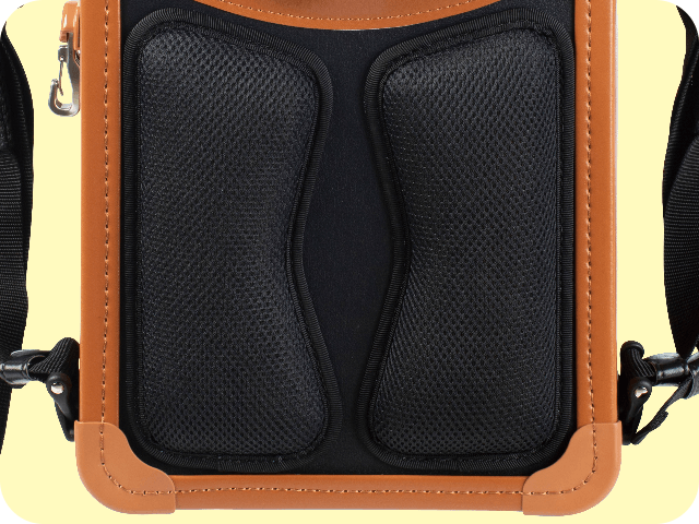 直接体に触れる肩ひもと背中部分に採用し、クッション内の空気を通気させ、蒸れにくく、夏場でも快適にご使用頂けます。
