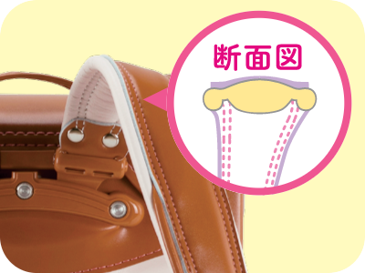 肩ひも付け根の立ち上げ機能でランドセルが背中にぴったりフィット!成長に合わせて左右にも広がります。